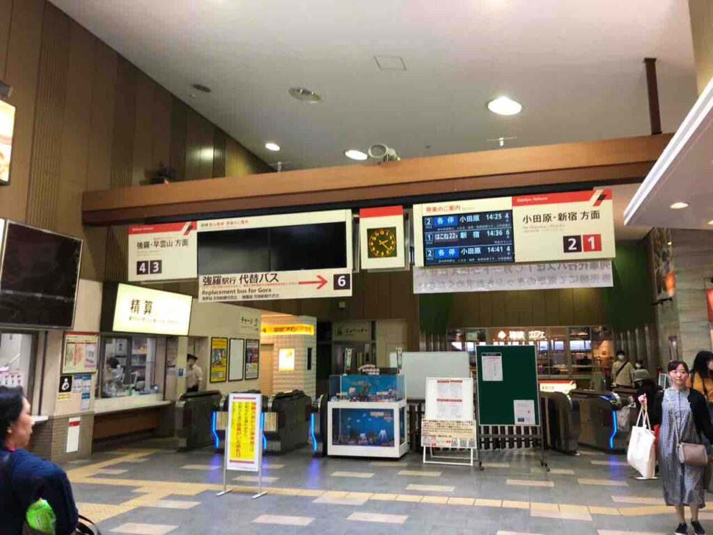 帰りの電車の時間もあるので湯本の滞在時刻は数十分。家族に頼まれたお土産だけ買って小田原行きに飛び乗りました。