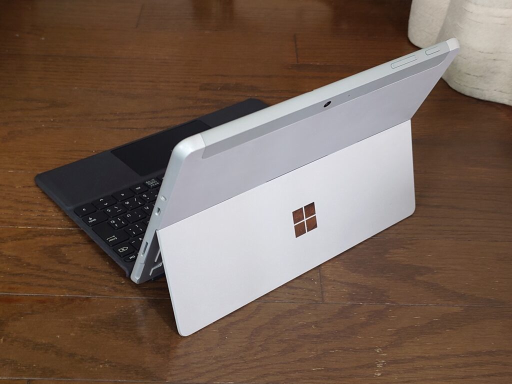 最近世間を賑わせているこいつの正体は「Surface Go 2」。2020年のモデルなので割と古い。CPUはPentium 4425Y。メモリーは4GBで、ストレージは64GB。