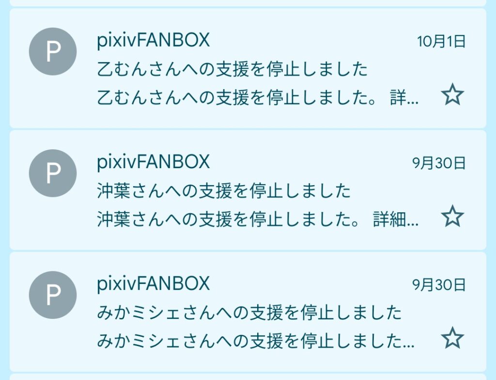 FANBOXの支援を全ストップしました。更新されても見てるんだか見てないんだかでふわっとしていたので、もうこの際全部だ!と思ってやめました。いいシコ人生だったと思います。